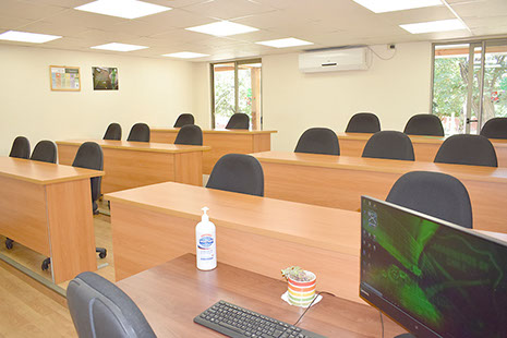 Cuenta con 575 m2 repartidos en 15 salas de clases, cada una acondicionada y equipada con proyector multimedia, pizarra digital y un computador.