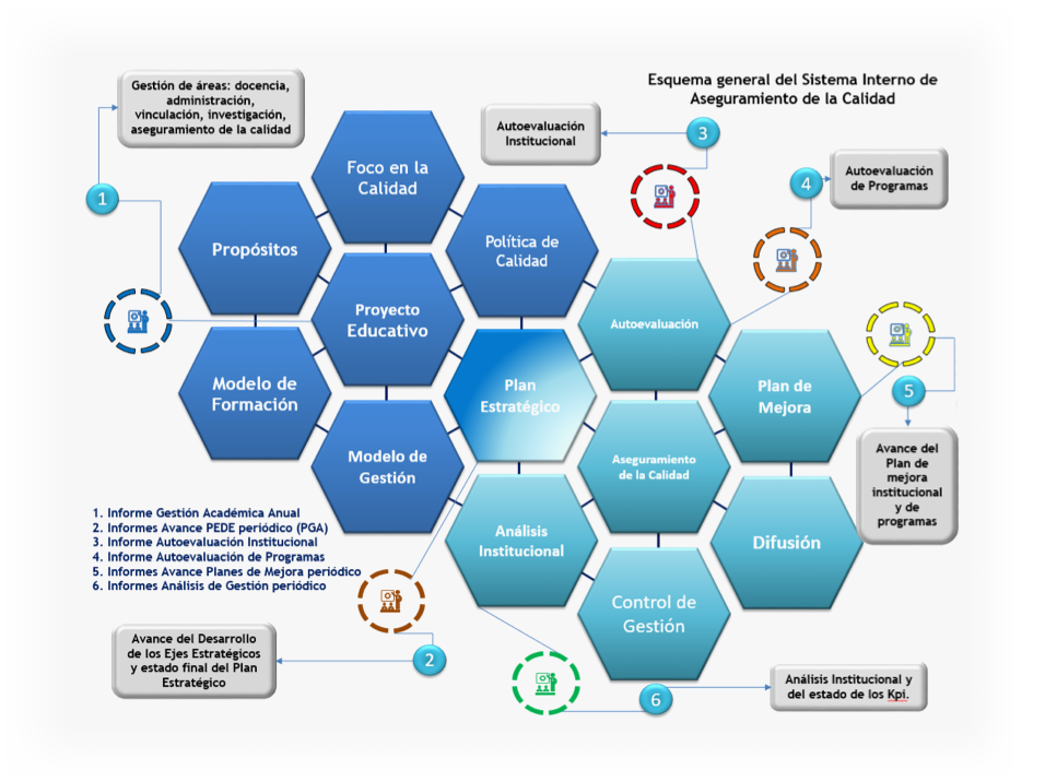 El Numeral 20) punto 3 señala: “Aseguramiento interno de la calidad. El sistema interno de aseguramiento y gestión de la calidad institucional debe abarcar la totalidad de las funciones que la institución desarrolla, así como las sedes que la integran y deberá aplicarse sistemáticamente en todos los niveles y programas de la institución de educación superior. Los mecanismos aplicados deberán orientarse al mejoramiento continuo, resguardando el desarrollo integral y armónico del proyecto institucional.”