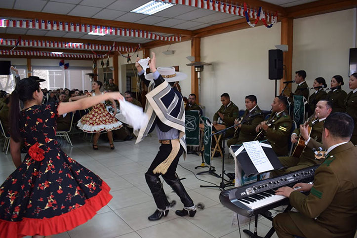La instancia estuvo amenizada con una excelente presentación del grupo folclórico de la Escuela de Formación de Carabineros y el Orfeón Nacional, quienes interpretaron y bailaron cuecas y tonadas criollas.