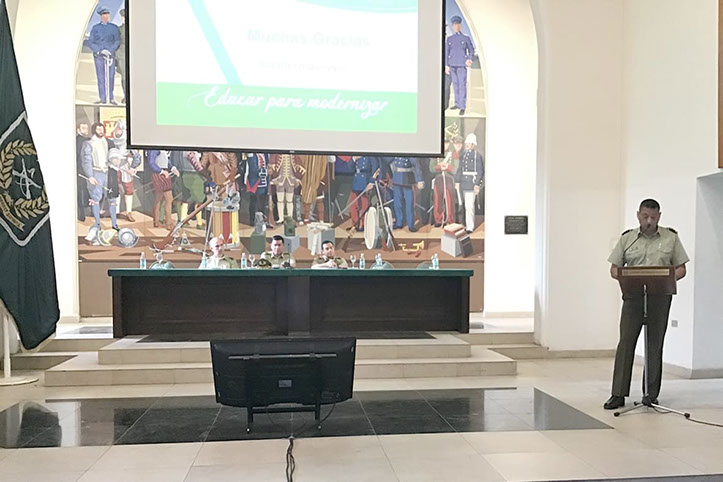 Durante la actividad, debieron exponer el Mayor Raúl Sáez Pezo y el Mayor Cristian Márquez Alarcón sobre el tema “modelo predictivo basado en el aprendizaje automático para predecir la probabilidad de concreción de una amenaza telefónica de instalación de artefacto explosivo”.