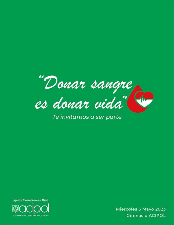 El próximo 3 de mayo se realizará la campaña de recolección de sangre en la Academia de Ciencias Policiales, “Donar Sangre es Donar Vida”.