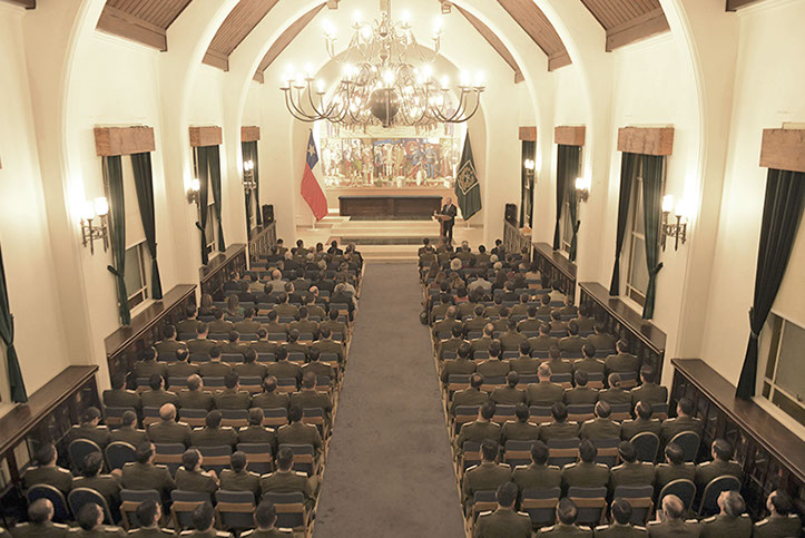 La ceremonia fue presidida por el Señor General Director de Carabineros Chile Don Mario Rozas Córdova y acompañado por el General Director Manuel Ugarte Soto, Ministro de la Corte Suprema Hugo Dolmestch; Ignacio Sánchez Díaz, Rector de la Pontificia Universidad Católica de Chile y 100 oficiales estudiantes del plantel.