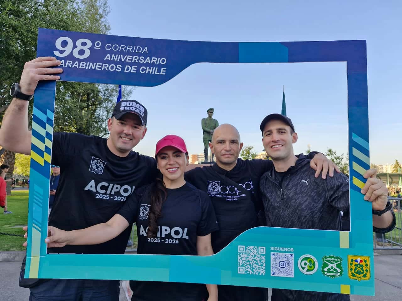 El pasado domingo 13 de abril, el Director de la Academia de Ciencias Policiales, Coronel Claudio Henríquez Valenzuela, los Subdirectores y más de 150 oficiales estudiantes participaron en la 98° Corrida Aniversario de Carabineros, una actividad deportiva y recreativa que reunió a miles de personas en el frontis de la Escuela de Carabineros en Santiago.