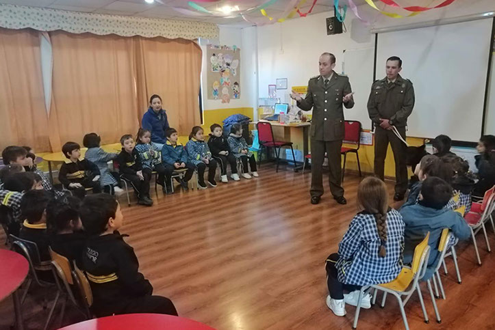 Cita durante la cual los uniformados conversaron con los menores sobre el rol de Carabineros en la comunidad, con la finalidad que desde temprana edad la ciudadanía se involucre con la labor de nuestra Institución, que mantiene como esencia la prevención. Encuentro donde los alumnos también pudieron aclarar dudas sobre el rol del hombre y mujer Carabinero, además de interiorizarse con la importante misión que tienen nuestros perros policiales.