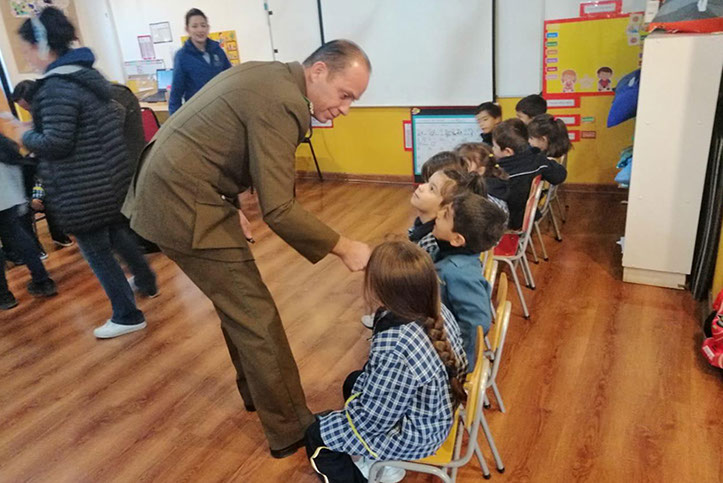 Una entretenida y también educativa mañana vivieron este jueves 11 de abril más de 30 alumnos de prekinder del “Colegio Mayor” de Peñalolén, eso, producto de la visita que realizaron oficiales estudiantes de la Academia de Ciencias Policiales de Carabineros, quienes llegaron hasta el recinto estudiantil en compañía “Chelsey”, can policial con la que los niños compartieron.