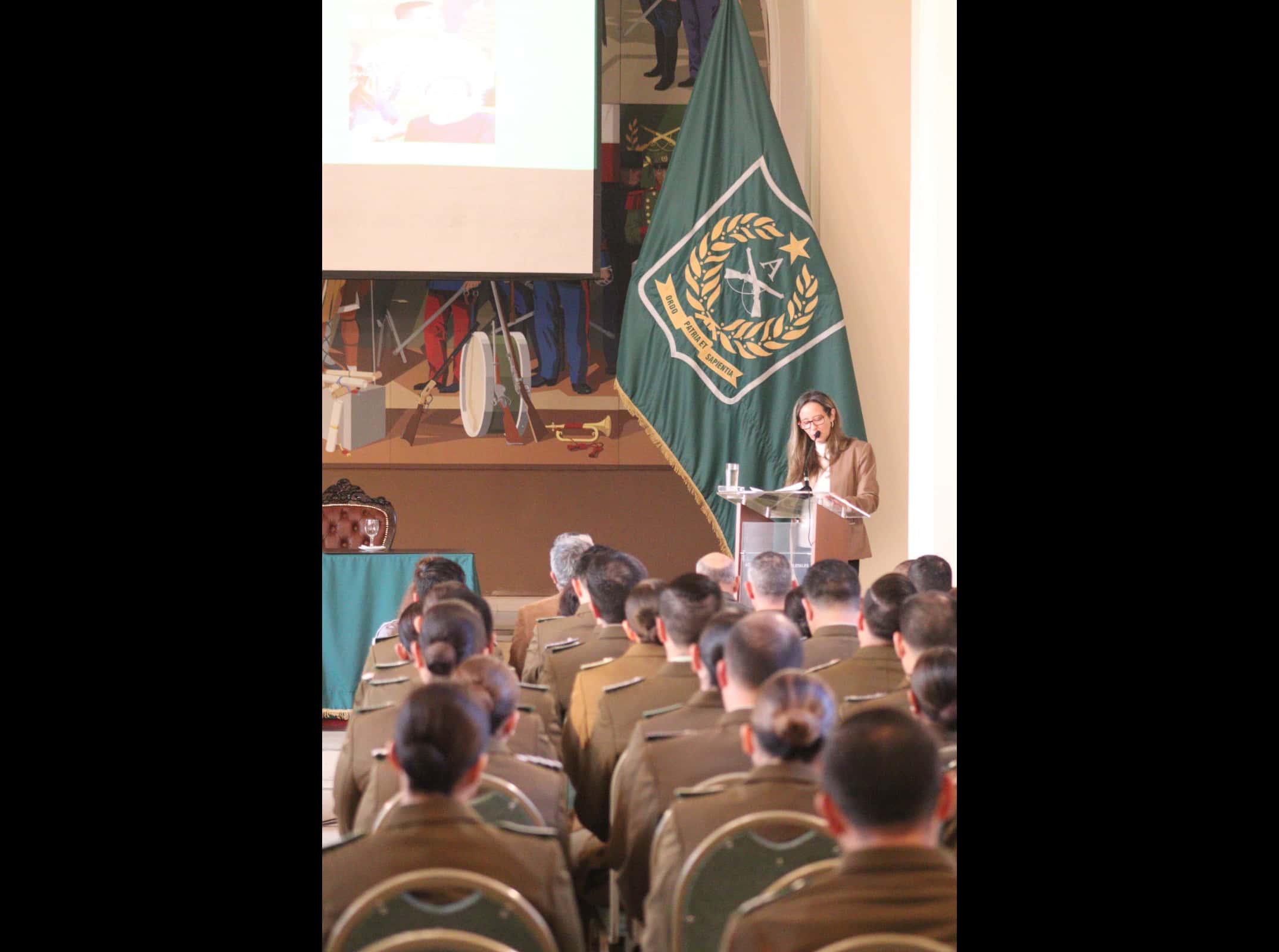 La ponencia fue desarrollada por la periodista del plantel, Catalina Gómez, con el fin de fortalecer la comprensión del rol que cumplen las comunicaciones como herramienta estratégica en la gestión policial, destacando su impacto en la confianza ciudadana y en la cohesión interna de la Institución.