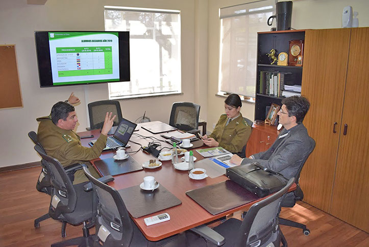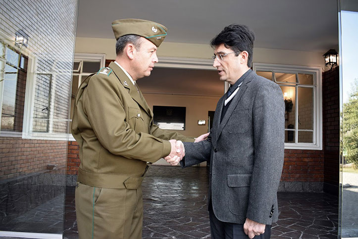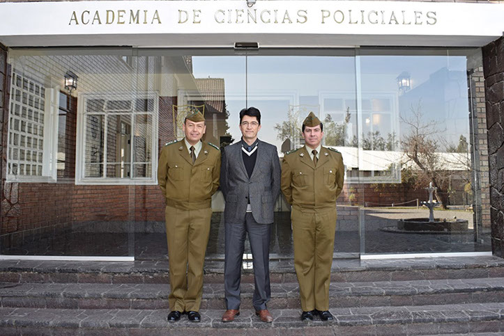 La visita de Ahmet Gunes, es el representante en Chile del Ministerio del Interior de Turquía en ámbitos de seguridad, inició con un recorrido por las dependencias y pareas verdes de la Academia de Ciencias Policiales ubicada en Las Condes, para más tarde continuar con una presentación desarrollada por el subdirector académico, Mayor Claudio Rosales Pacheco, quien le compartió información sobre el proceso académico desarrollado por la Academia, que busca perfeccionar y profundizar los conocimientos de los oficiales de Carabineros de Chile.