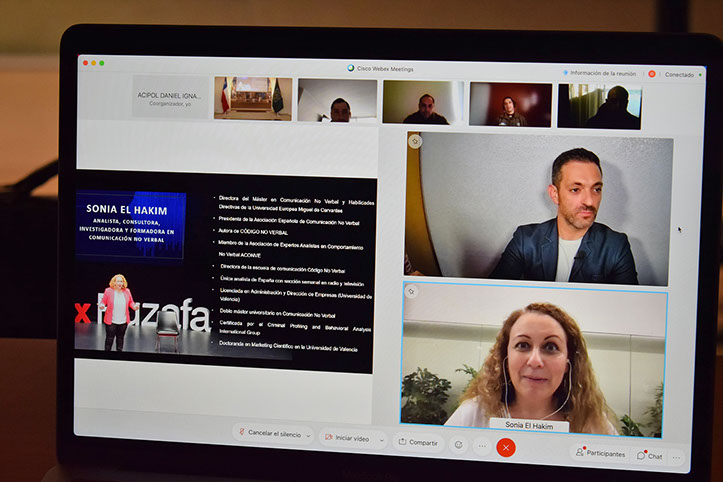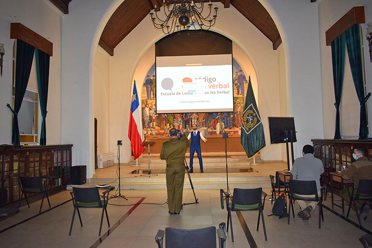 Alrededor de 300 personas de la comunidad educativa de la Academia de Ciencias Policiales e invitados especiales se conectaron vía online en una amena y práctica conferencia en formato Webinar sobre habilidades comunicativas denominada “Comunicación no verbal en la detección de conductas no violentas y violentas” organizada por la oficina de Vinculación con el Medio del Plantel.