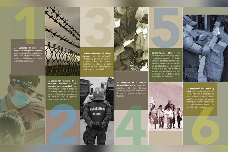 5.- Discernimiento ético. Todo carabinero asume el compromiso con el respeto y protección de los Derechos Humanos mediante los diversos procesos educacionales en el desarrollo de su carrera profesional y, a su vez, mediante su capacidad reflexiva para decidir y resolver los conflictos en el ejercicio de sus funciones.