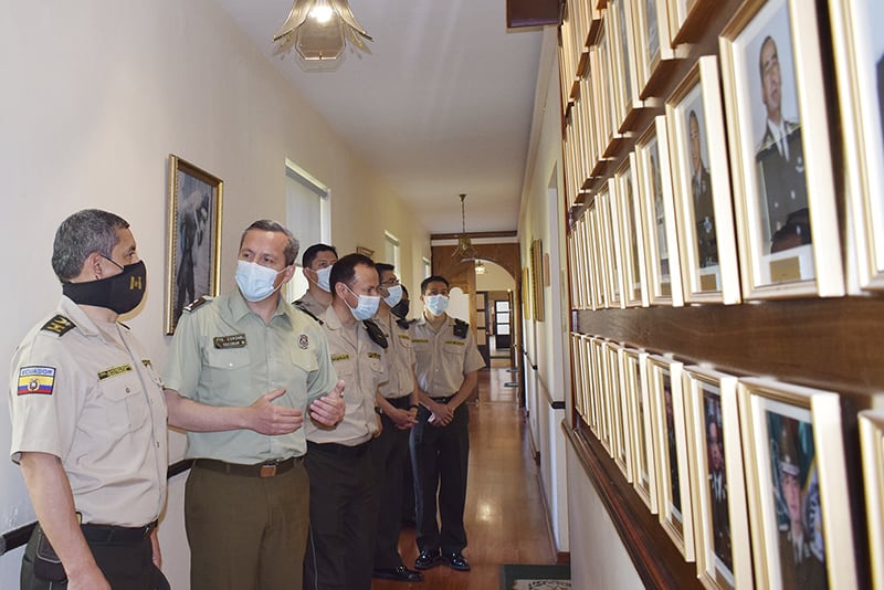 De esta forma, llegó hasta el plantel de educación superior el día 7 de octubre a las 10 horas el agregado policial de la Embajada de Ecuador que fue recibido por la más alta autoridad de la Academia, junto al Subdirector Académico, Teniente Coronel Alex Escobar Muñoz. Con los becarios de su país realizaron un recorrido por las dependencias de la ACIPOL, donde escuchó atentamente el relato histórico del desarrollo de la Academia.