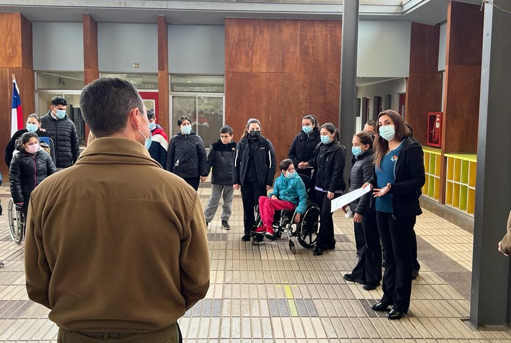 Delegación de estudiantes entregan donación a escuela especial de carabineros