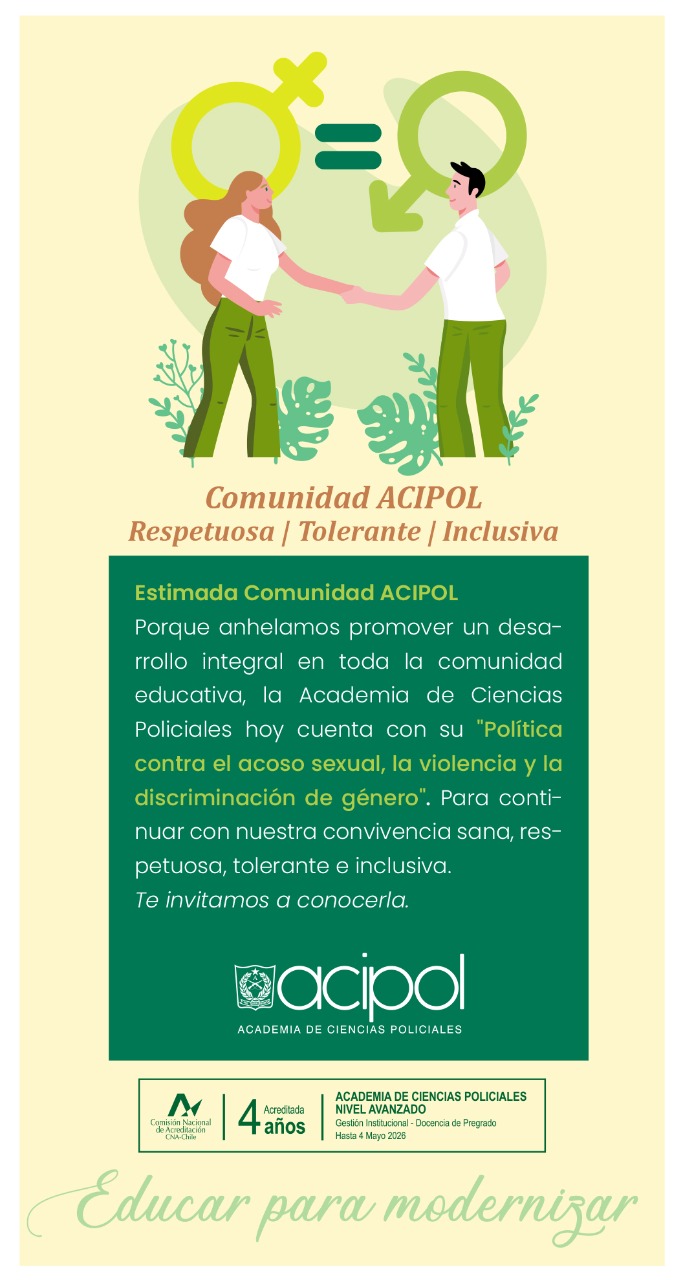 Entra en vigencia politica e instructivo de la Acipol sobre el acoso sexual, la violencia y la discriminación de genero