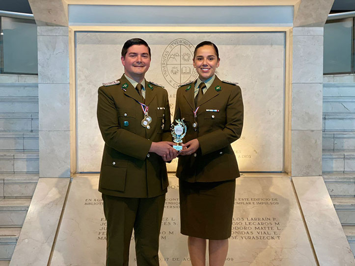 La dupla integrada por la Teniente Pía Garcés y Teniente Sergio Rozas, de la carrera de Ingeniería Politécnica Policial, logró alcanzar el primer lugar en la tabla clasificatoria con 11 puntos, obteniendo el título de finalistas y equipo subcampeón del torneo tras la gran final del evento.