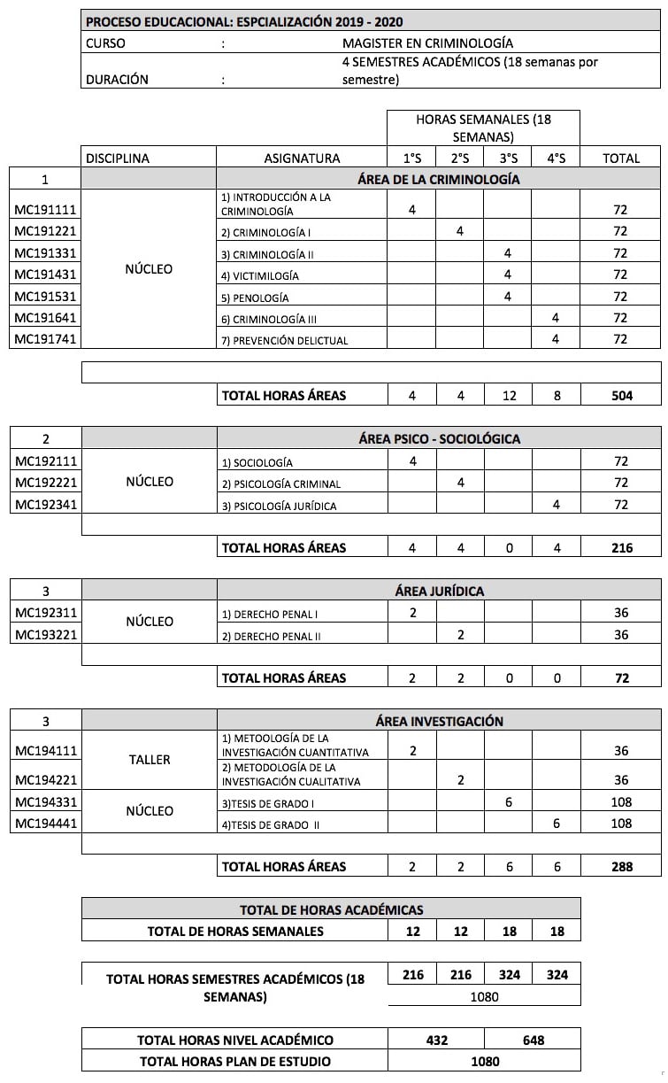 PLAN DE ESTUDIO - CRIMINOLOGÍA